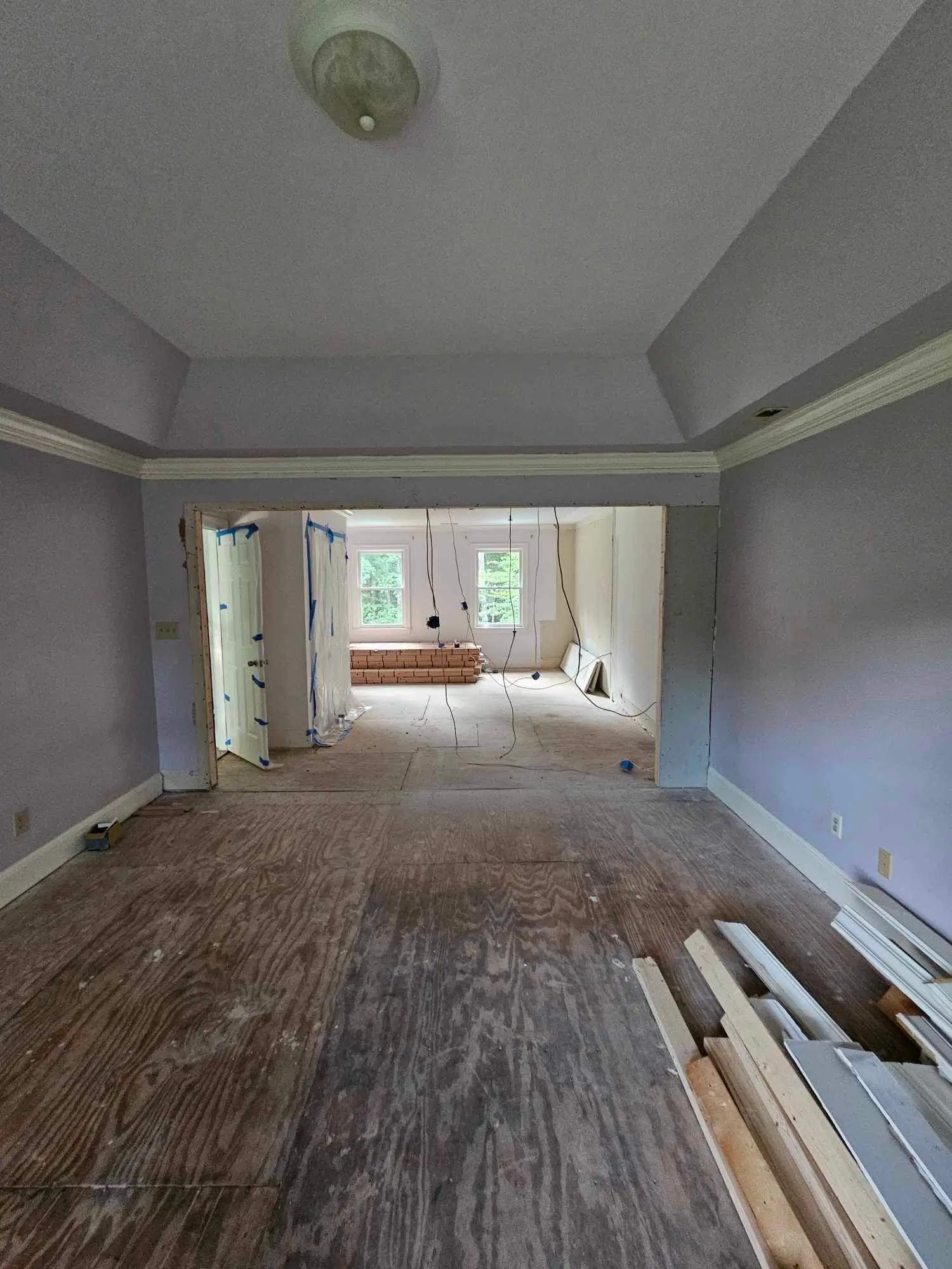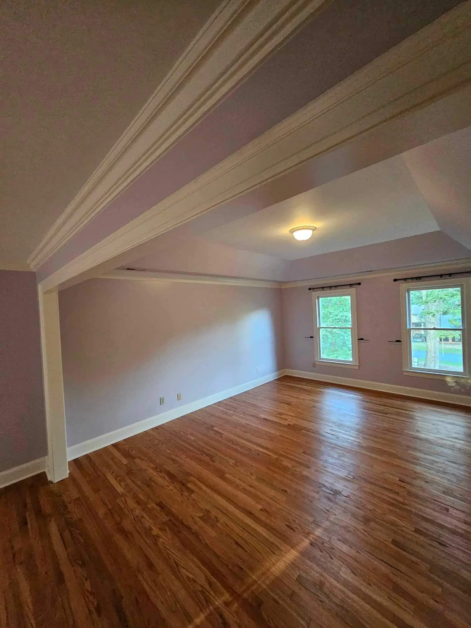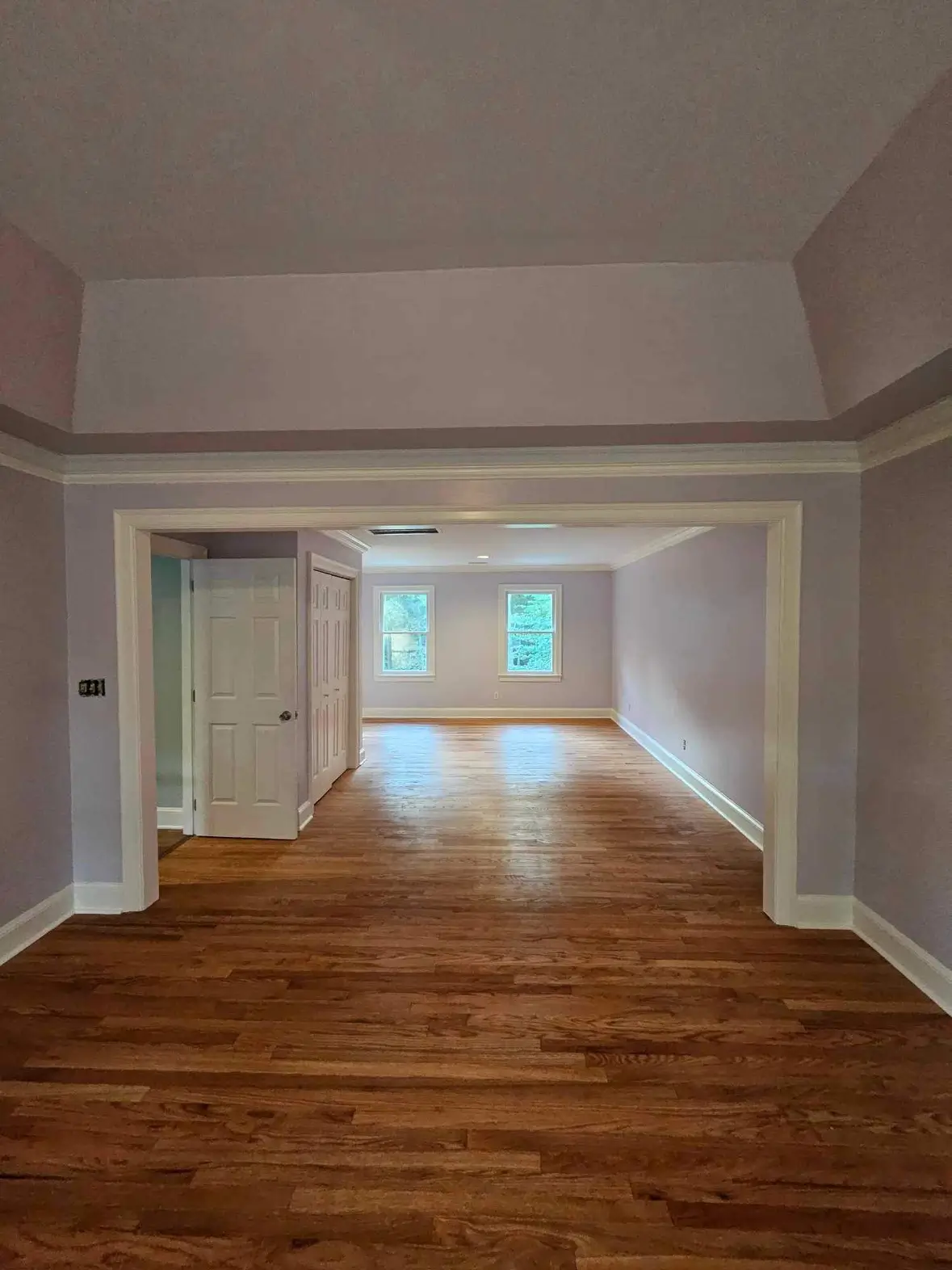 Transforming outdated spaces into stylish, functional rooms. New hardwood flooring seamlessly extends throughout the bedroom and sitting area. Fresh drywall, finishes, and paint complete the modern, polished look.